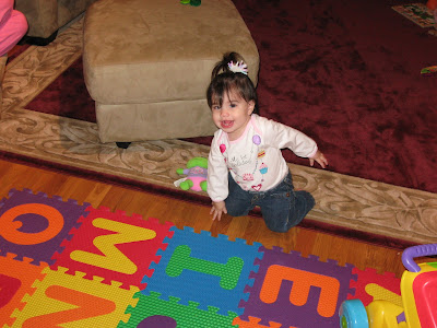 Oh my GOODNESS! I know I've said it before, but I just think she is one of the cutest little girls ever! I love her dark hair (that she's obviously had since birth!) and she has the cutest smile. Early birthday wishes to her and congratulations to you for having such beautiful children! π