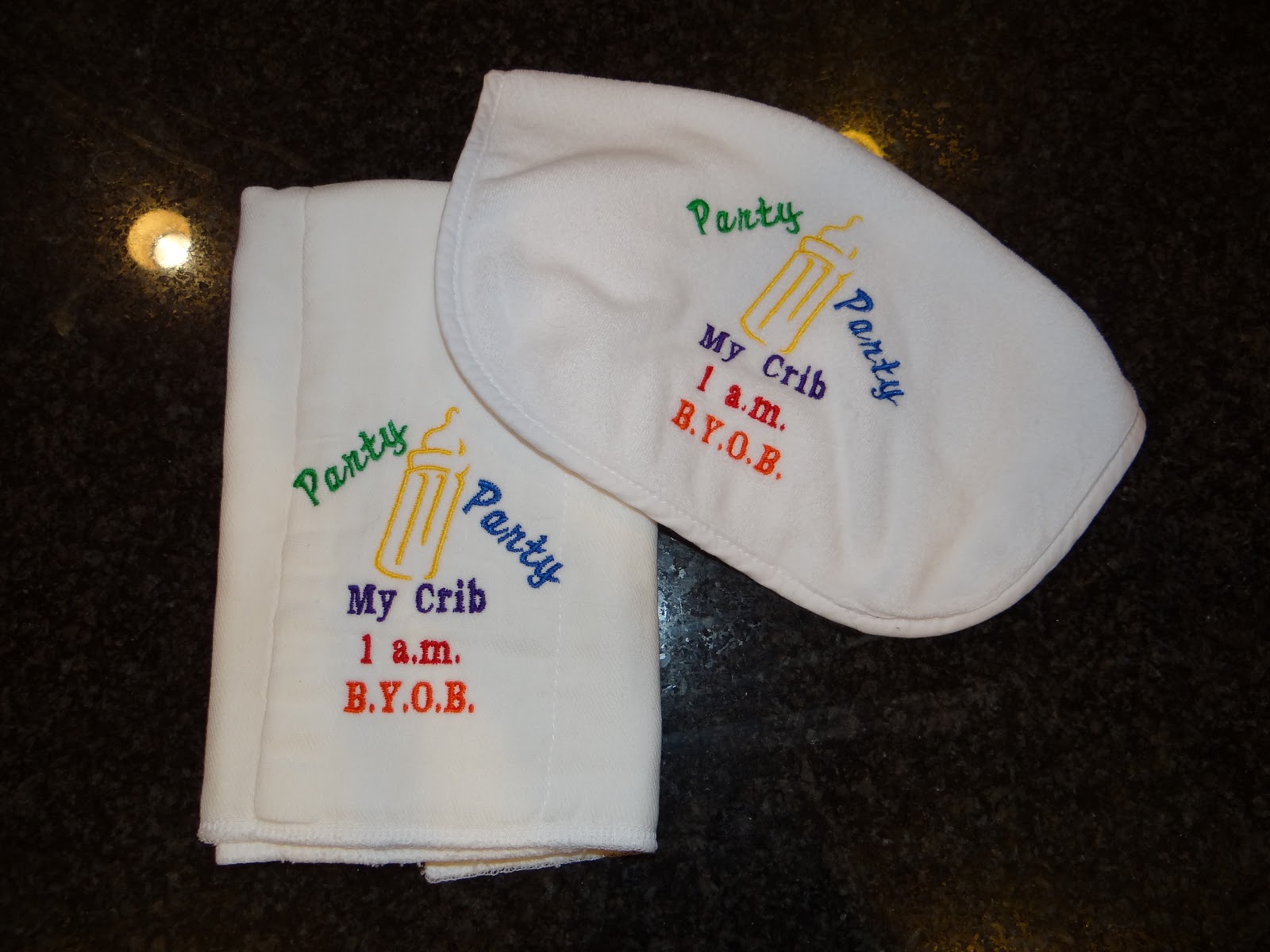 This cute bib set I will use for my first born, my son. I like the quote, its so up to date. lol ambreiat91@yahoo.com