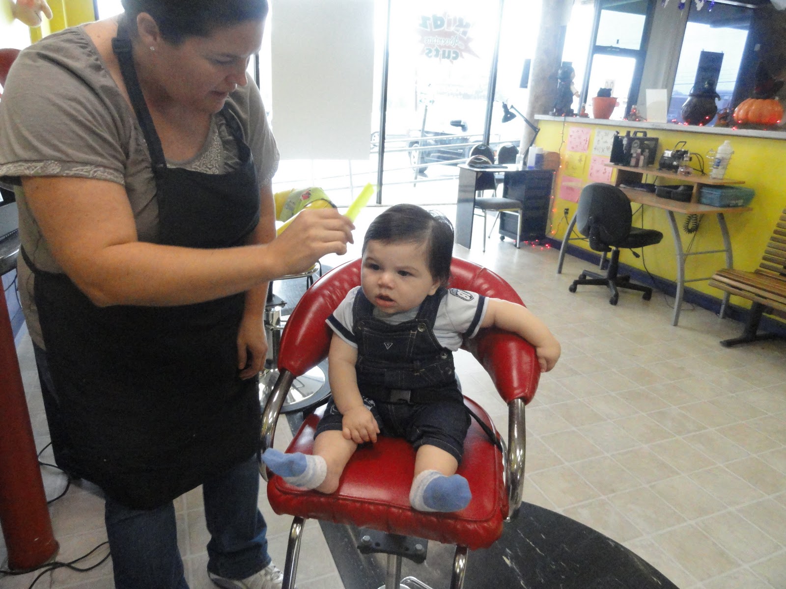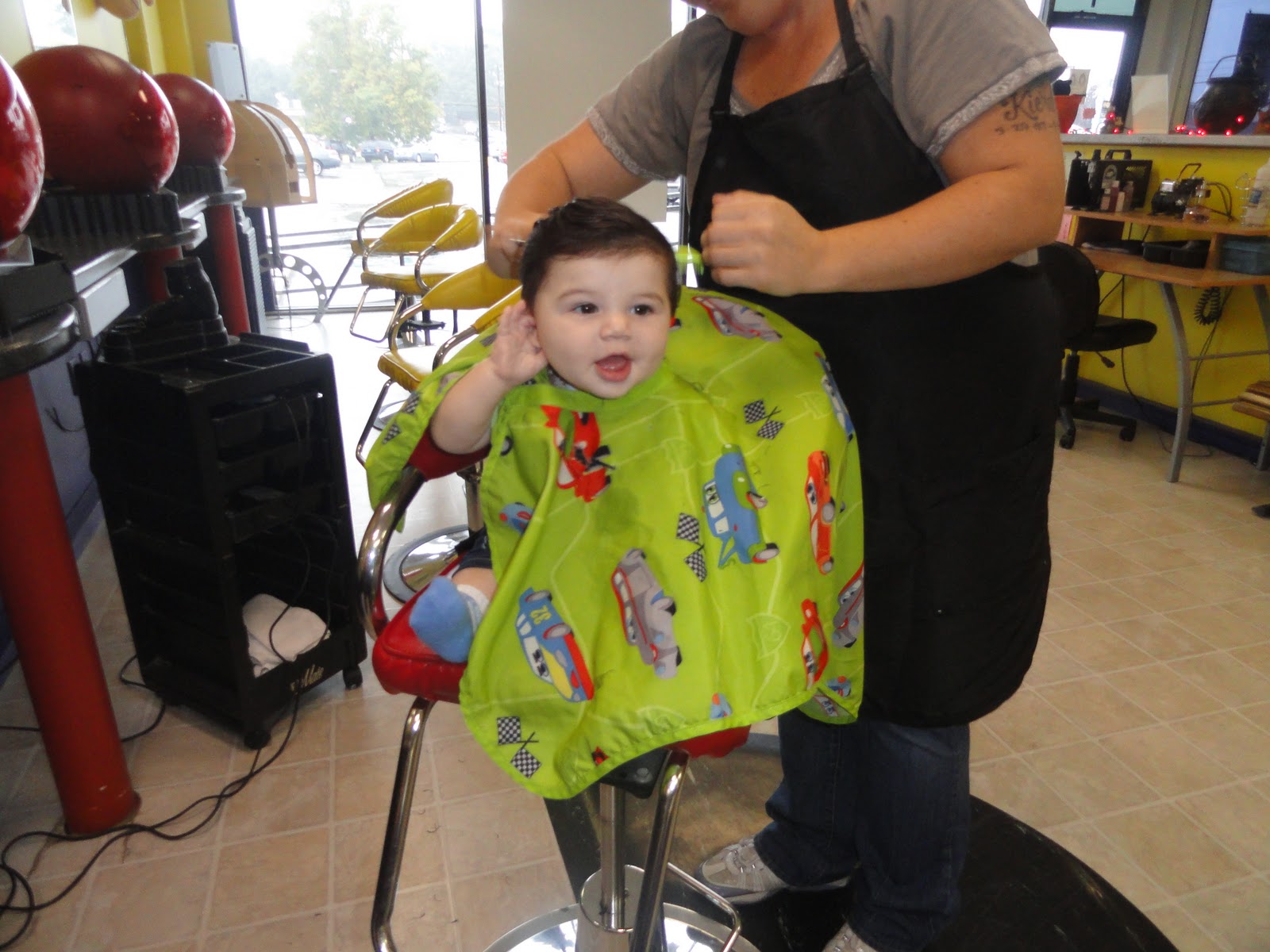 I waited 9 months to get Hayley’s first professional haircut. There was no way I could wait that long for the Z-man so off we went on Wednesday for his first cut. He did awesome! Come check out all the pictures of my sweets getting his haircut. I am biased but I think he is adorable!
