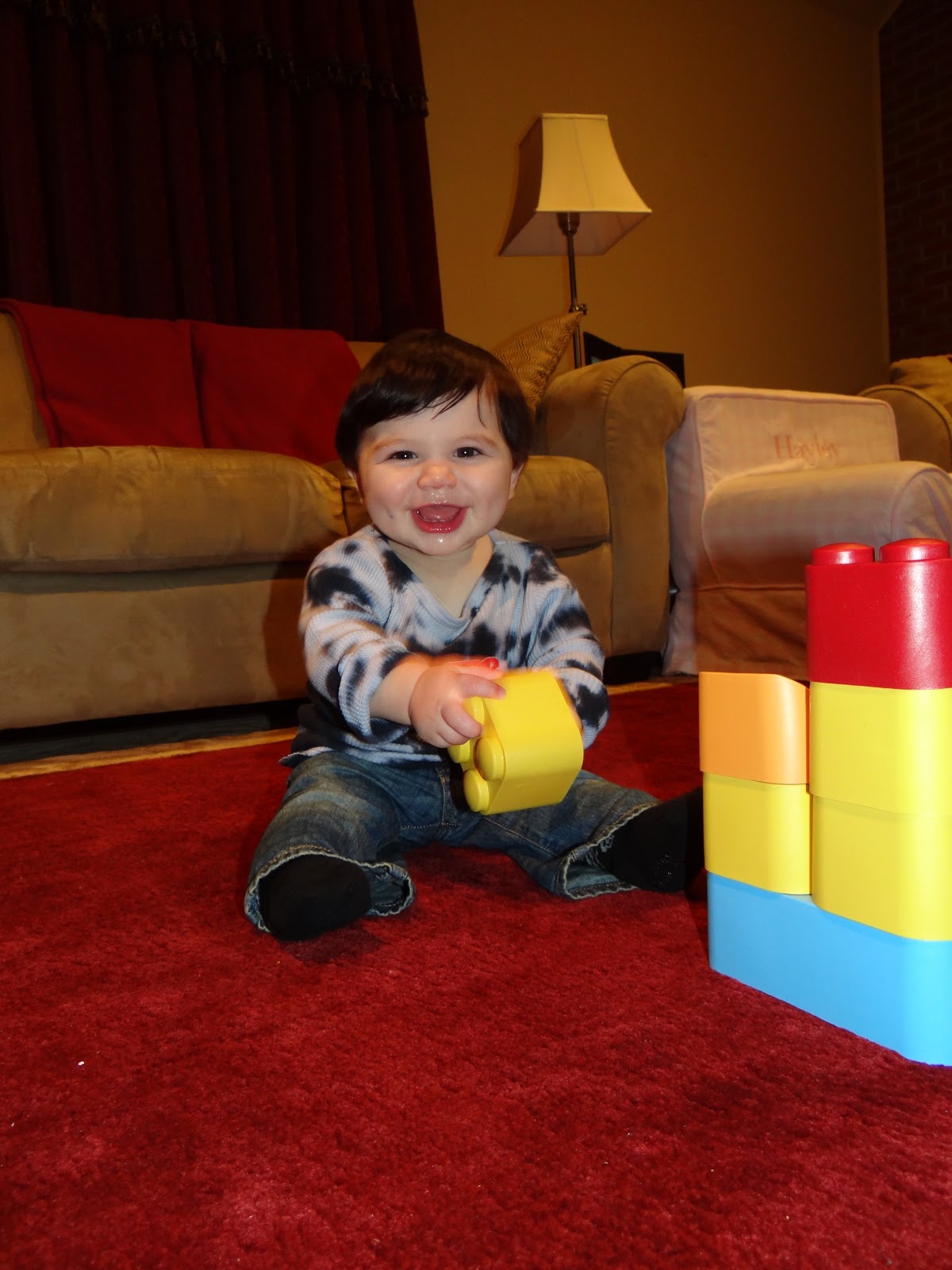 Look at those cheeks, He is so cute! Love those blocks, their so big.. great for little hands!