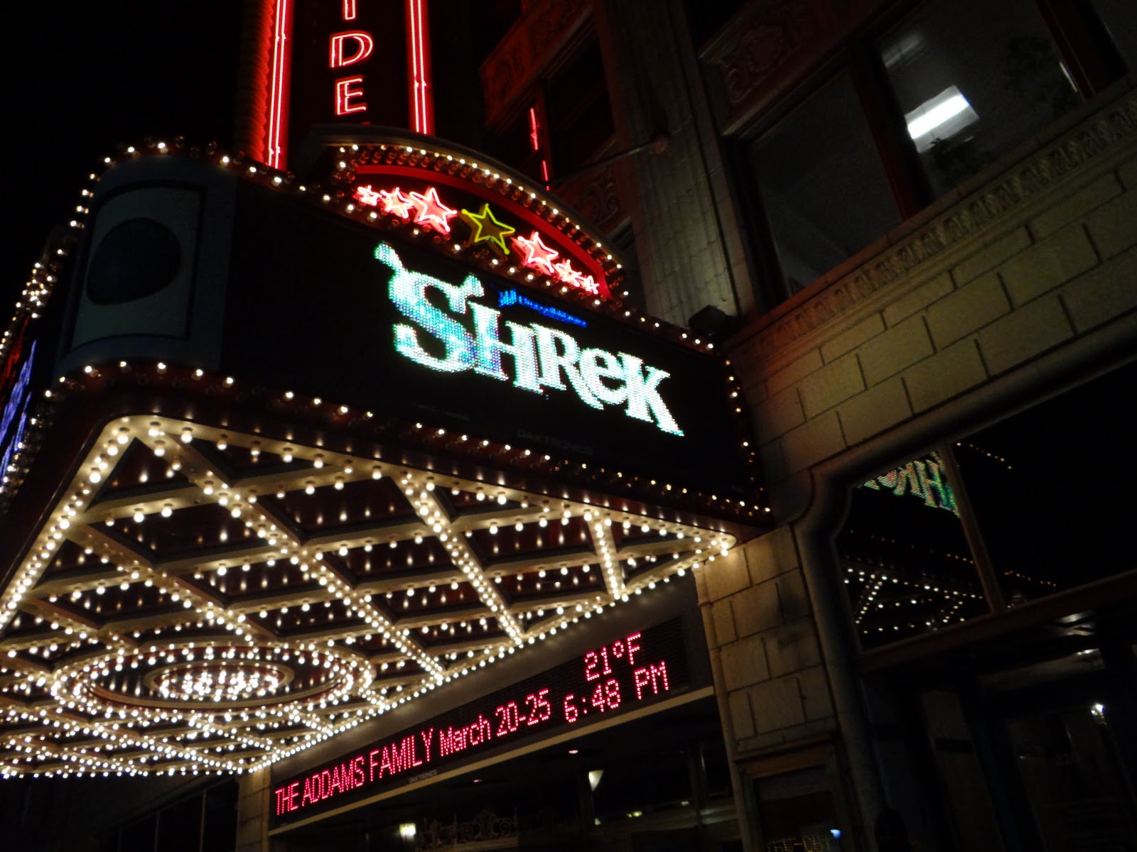 Two nights back, I took my mother in law, husband, and Hayley to see Shrek the Broadway Musical at the Providence Performing Art Center in Rhode Island. This was the first Broadway show I have ever taken Hayley to and I was somewhat nervous how she would do. To my delight, she did extraordinary. She sat through the whole show and barely flinched. At the end of the show, she was the first one up giving a standing ovation.