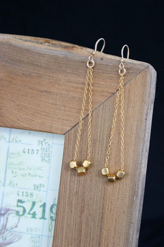 Love this Dangle Gold Earrings: http://www.etsy.com/listing/92240401/dangles-gold-earrings-gold-dangle