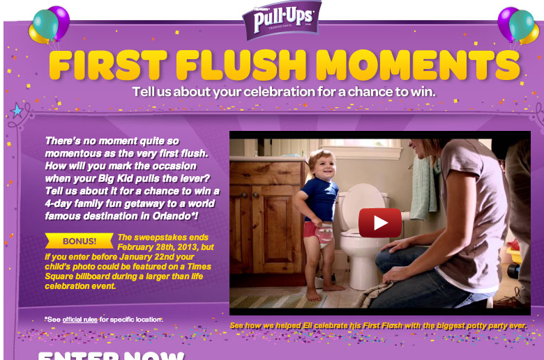 Even if you are not able to attend this fantastic party, Pull-Ups is giving you a chance to have your baby/toddler be featured on a billboard in the mist of New York City’s Time Square during the Pull-Ups party on January 29.  Pull-Ups is asking parents like me and you, to share their tot’s First Flush celebration moment for the chance to be featured on a Times Square billboard during the First Flush celebration on January 29 – and ultimately be entered to win a trip to the most magical family getaway destination on Earth (ORLANDO). How awesome does this sound. If you are interested and I surely hope you are, head on over to the Pull-Ups Facebook Page and begin uploading your photo. I just entered Zane- fingers crossed!  Maybe you will win- you never know if you do not enter! Good luck to all!