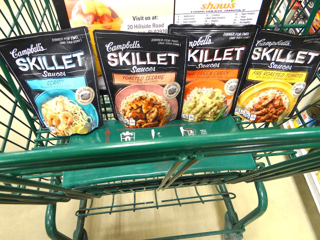 I decided I was going to step it up a tiny bit in the traditional recipe. I still wanted to spend as little time as possible in the kitchen, but wanted to go beyond our staple 3 step recipe we use with the Campbells’ Skillet Sauces. I decided to go to Shaw’s to check out what they had on the shelves for Campbell’s Skillet Sauces. I was so happy to see six scrumptious varieties including Creamy Chipotle, Fire Roasted Tomato, Toasted Sesame, Marsala, Scampi, and Thai Green Curry right in the sauces/canned pasta/ soup aisle. When I was there, I found an unbelievable deal on the Campbell’s Skillet Sauces- 2 for $4.00! Amazing deal so I ended up buying quite a few so I had them for all our future date nights. There is also an in-store coupon display for $2 off the purchase of fresh chicken, steak, or seafood when you buy 1 Campbell’s Skillet Sauce, or you can print a $1.00 coupon at at the Campbell’s Facebook Page. Feel free to browse my Google+ story to see my full Shaw’s shopping trip!