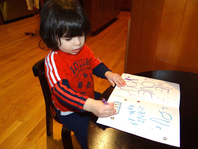 10 minutes went by and my collage was ready. The collage WAS GORGEOUS!!! I was actually tearing up on how good it looked. Hayley was with me that day, and she remarked that she loved it as well. We decided to take home the collage and our chocolates, and make the most perfect card to go with it. Hayley and Zane spent a good deal of time creating the perfect Valentine’s Day card for their daddy!