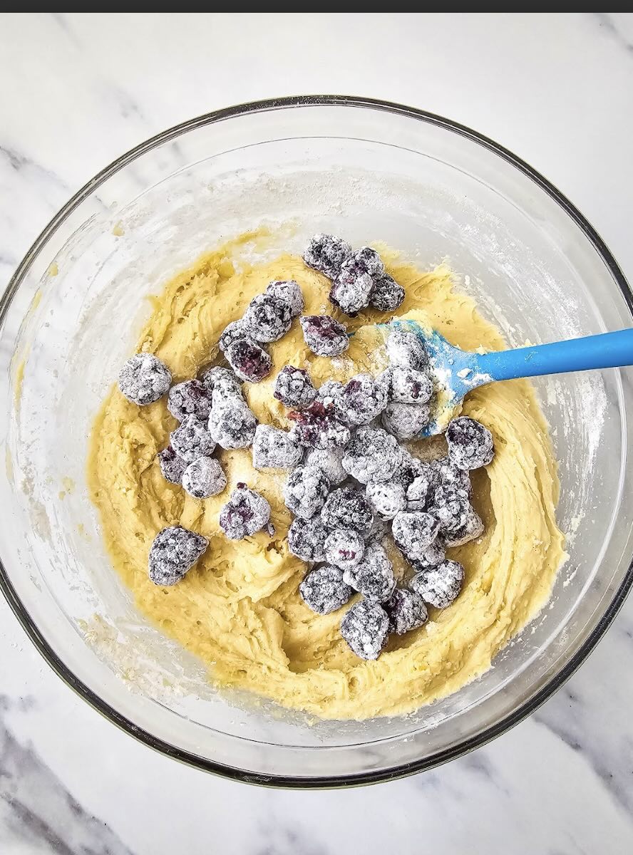 - Lightly coat the berries in a small amount of flour before folding them into the batter. This helps prevent them from sinking. The batter should be lumpy, not smooth.